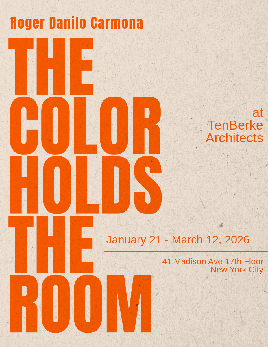 TenBerke invites you to our Winter Artist Program exhibition by Roger Danilo Carmona titled “The Color Holds the Room.” Please join us for the opening reception with the artist on Wednesday, January 21 from 6:00pm – 8:00pm. The exhibition will be open from January 21 – March 12, 2026, during our gallery hours Wednesday and Fridays from 11:00am – 5:00pm at TenBerke Architects, 41 Madison on the 17th Floor. We are honored to display this exhibition in our gallery space and hope you will join us. Please see below for more information about Roger Carmona and his exhibition.
